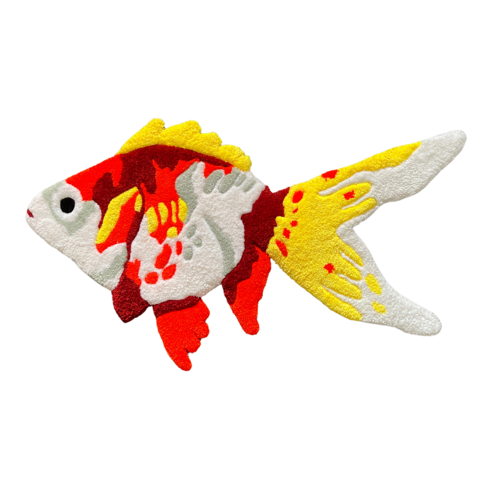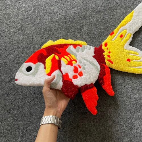 พรมลายปลาทอง สัญลักษณ์ของความโชคดี เราทำพรมชิ้นให้เป็นไปตามรูปร่างของปลาทองสีส้มสดใส ใช้ติดบนผนังตรงไหนก็ได้ให้เหมือนกับว่าอยากให้ปลาทองมาแหวกว่ายบนอากาศ มันคงดูน่าสนุกไม่น้อย ใครชอบตกแต่งห้องในโทนแบบการ์ตูนที่มีสีสัน พรมผืนนี้ก็อยากไปอยู่ที่บ้านของคุณนะ